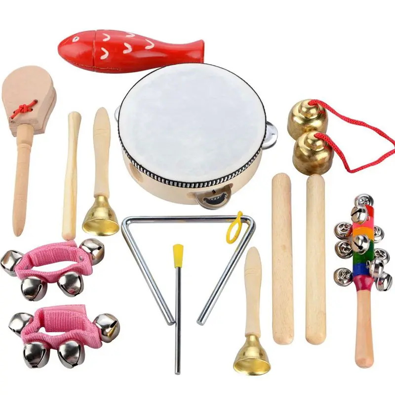 Best Quality 14 PCS Wooden Musical Instruments Set Percussion Toy Rhythm Band Set Healthy Baby Toy Gift with A B